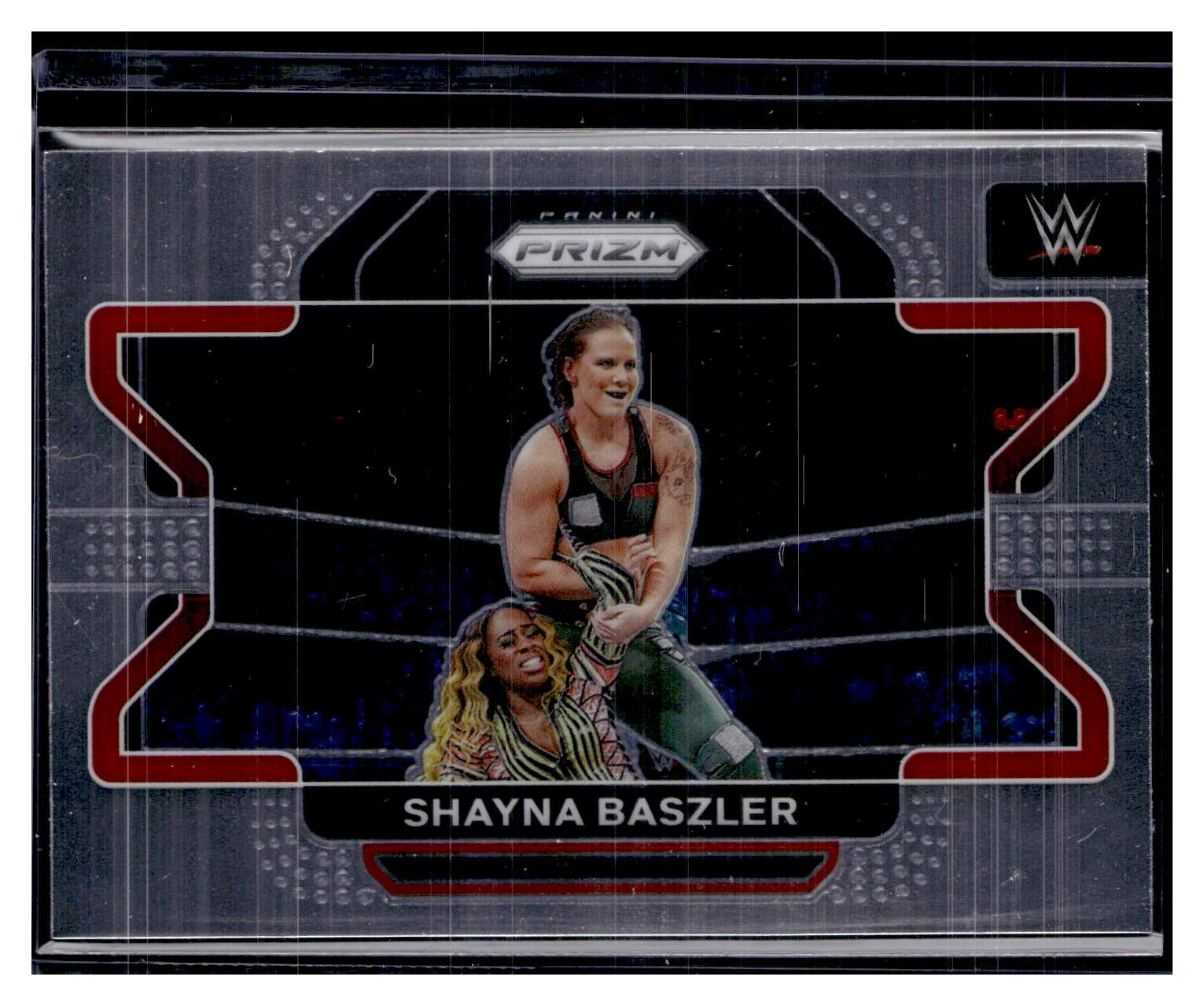 Wrestling (Brand: Panini) (Type: 2022 Prizm WWE) (Subtype: Smack Down) (Hall of Famer: ) (Superstar: ) (Rookie: ) (Kind of Packaging: Toploader with Sleeve) (Year: 2022) (Unique Number: 100) (Numbered Card: ) (Feature: Shayna Baszler)