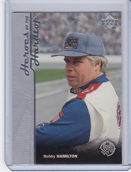 NASCAR (Brand: Upper Deck) (Type: Race to the Cup) (Subtype: Heroes of the Hardtop) (Kind of Packaging: Toploader) (Year: 1997) (Unique Number: 9) (Numbered Card: ) (Feature: Bobby Hamilton)