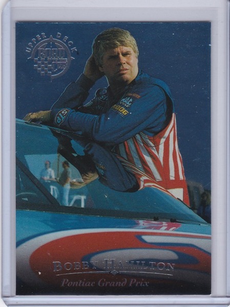 NASCAR (Brand: Upper Deck) (Type: Power Plants) (Subtype: Road to the Cup) (Kind of Packaging: One-Touch) (Year: 1997) (Unique Number: 51) (Numbered Card: NA) (Feature: Bobby Hamilton) (Sleeve: No)