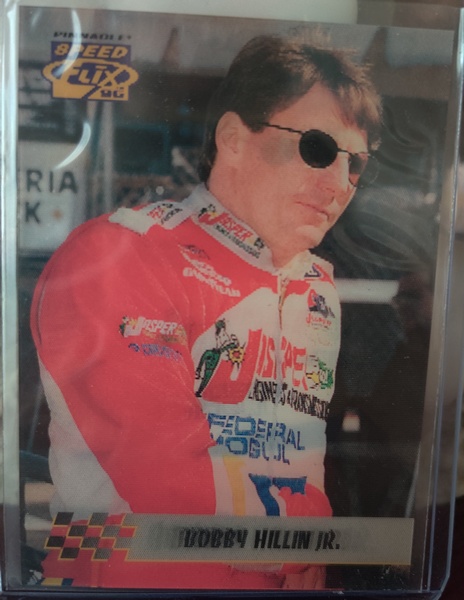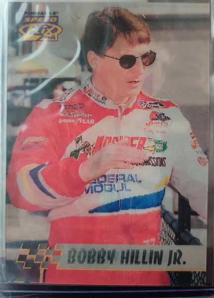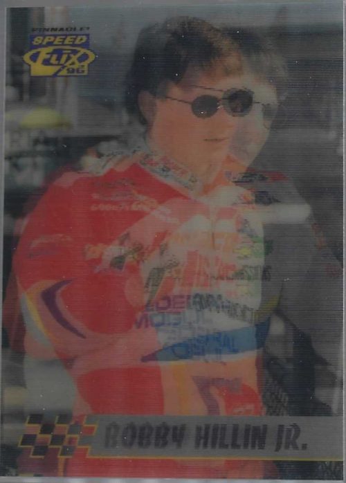 NASCAR (Brand: Pinnacle) (Type: Speed Flix 96) (Subtype: Holographic) (Kind of Packaging: Toploader) (Year: 1996) (Unique Number: 31) (Numbered Card: ) (Feature: Bobby Hillin Jr.)