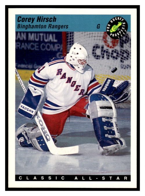 Hockey (Brand: Classic) (Type: Pro Hockey Prospects 1993) (Subtype: Classic All-Star) (Hall of Famer: ) (Superstar: ) (Rookie: ) (Kind of Packaging: Semi-Rigid with Sleeve) (Year: 1993) (Unique Number: 65) (Numbered Card: ) (Player: Corey Hirsch)