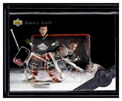 Hockey (Brand: Upper Deck) (Type: Upper Deck 92 93) (Subtype: All Rookie Term) (Hall of Famer: ) (Superstar: ) (Rookie: Y) (Kind of Packaging: Toploader with Sleeve) (Year: 1992) (Unique Number: AR6) (Numbered Card: ) (Player: Dominik Hasek)