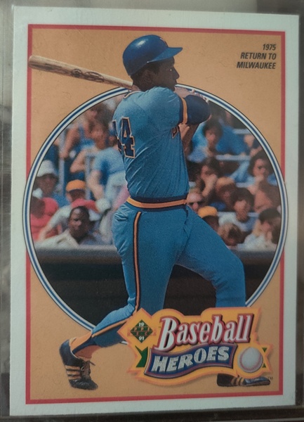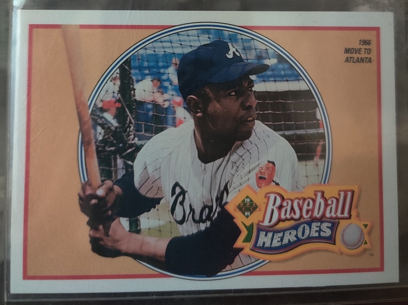 Baseball Card (Player: Hank Aaron) (Superstar: No) (Hall of Fame: Yes) (Rookie: No) (Kind of Packaging: Top-Loader) (Sleeve: Yes) (Unique Number: N/A) (Year: 1991)