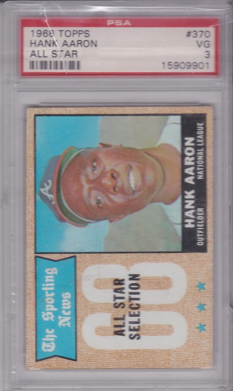 Graded Baseball Cards (Type: All Star Selection) (Subtype: The Sporting News) (Copyright Year: 1968) (Grading Co.: PSA) (Grade: 3 VG) (Unique Number: 370) (Numbered Card: ) (Player: Hank Aaron)