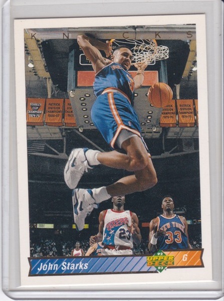 Basketball Card (Brand: Upper Deck) (Type: Upper Deck 92 93) (Subtype: ) (Kind of Packaging: Semi-Rigid) (Sleeve: Yes) (Hall of Fame: No) (Superstar: Yes) (Rookie: No) (Year: 1992) (Unique Number: 282) (Numbered Card: ) (Player: John Starks)