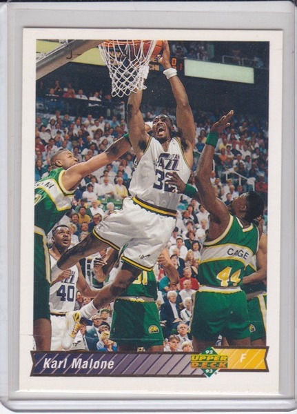 Basketball (Brand: Upper Deck) (Type: Collector’s Choice) (Subtype: ) (Hall of Famer: Y) (Superstar: N) (Rookie: N) (Kind of Packaging: Semi-Rigid with Sleeve) (Year: 1992) (Unique Number: 44) (Numbered Card: ) (Player:Karl Malone)