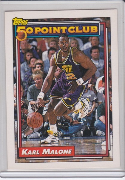 Basketball Card (Brand: Topps) (Type: 50 Point Club) (Subtype: ) (Kind of Packaging: Semi-Rigid) (Sleeve: Yes) (Hall of Fame: Yes) (Superstar: No) (Rookie: No) (Year: 1993) (Unique Number: 199) (Numbered Card: ) (Player: Karl Malone)