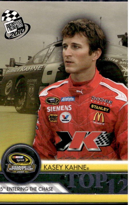 NASCAR (Brand: Press Pass) (Type: Press Pass 2010 Top 12) (Subtype: Chase for the Sprint Cup 2009) (Kind of Packaging: Semi-Rigid with Sleeve) (Year: 2009) (Unique Number: 113) (Numbered Card: ) (Driver: Kasey Kahne))