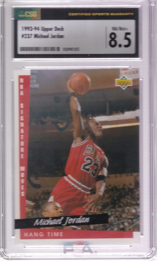Basketball (Brand: Upper Deck) (Type: 1993-94 Upper Deck) (Subtype: Hang Time) (Kind of Packaging: Graded Slabbed) (Year: 1993) (Unique Number: 237) (Grade: NM/Mint+ 8.5) (Feature: Michael Jordan)