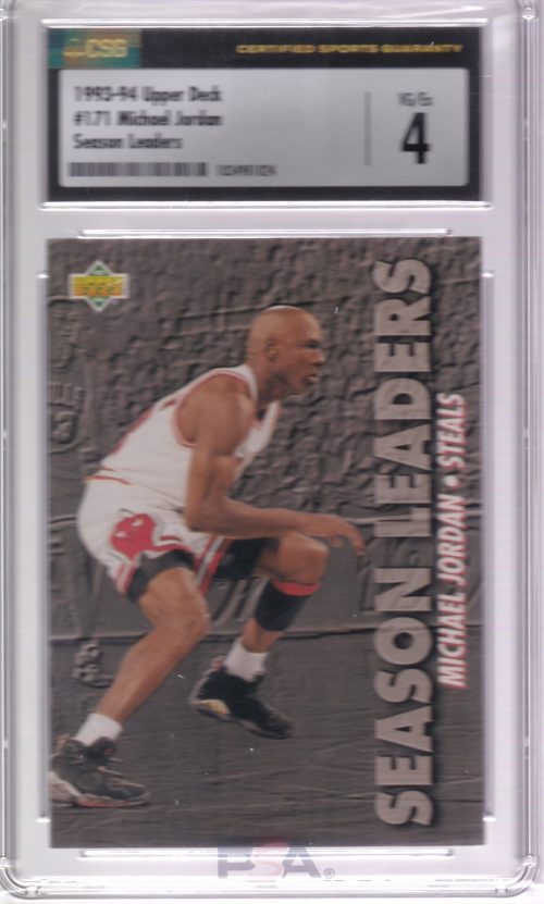 Basketball (Brand: Upper Deck) (Type: 1993-94 Upper Deck) (Subtype: Season Leaders) (Kind of Packaging: Graded Slabbed) (Year: 1993) (Unique Number: 171) (Grade: VG/Ex 4) (Feature: Michael Jordan)