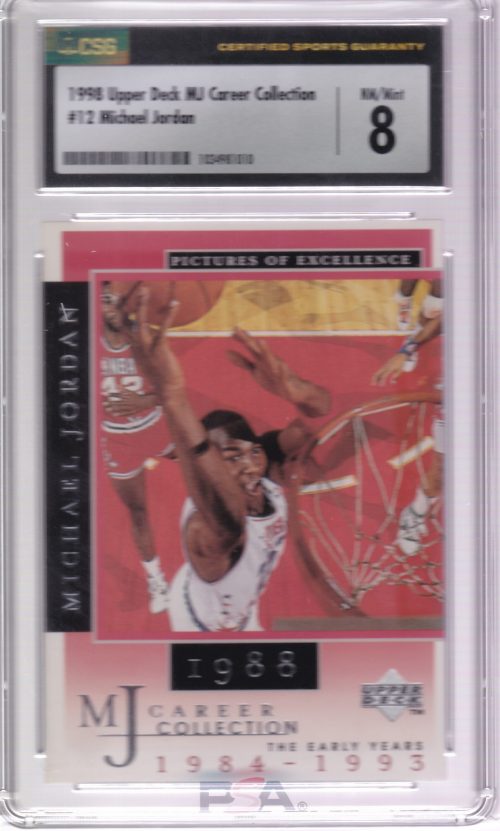 Basketball (Brand: Upper Deck) (Type: 1998 MJ Career Collection) (Subtype: Pictures of Excellence) (Kind of Packaging: Graded Slabbed) (Year: 1998) (Unique Number: 12) (Grade: NM/Mint 8) (Feature: Michael Jordan)