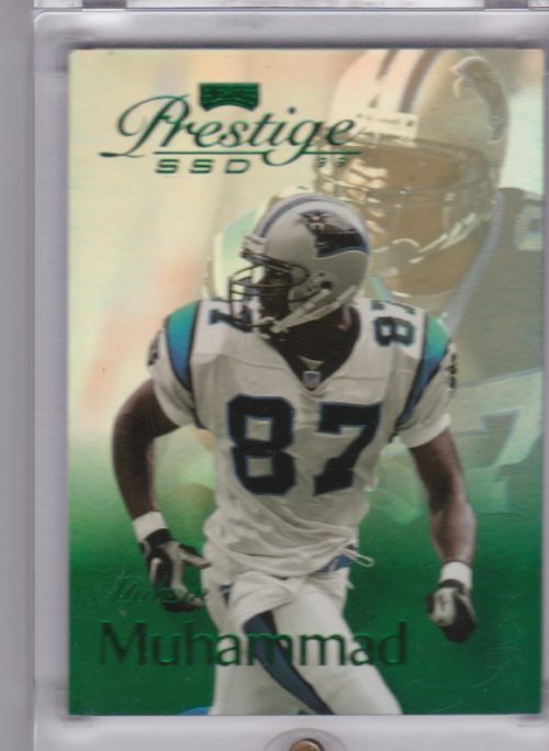 Football (Brand: Playoff Corp.) (Type: Playoff Prestige 99 SSD) (Subtype: ) (Hall of Famer: N) (Superstar: Y) (Rookie: N) (Kind of Packaging: Semi-Rigid with Sleeve) (Year: 1999) (Unique Number: B020) (Numbered Card: 223/500) (Player:Muhsin Muhammad)