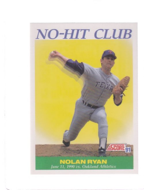 Baseball (Brand: Score) (Type: Score 91) (Subtype: No-Hit Club) (Kind of Packaging: Semi-Rigid with Sleeve) (Year: 1991) (Unique Number: 701) (Player:Nolan Ryan)