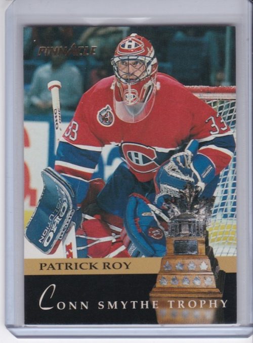 Hockey (Brand: Score) (Type: Pinnacle) (Subtype: Conn Smythe Trophy) (Hall of Famer: Y) (Superstar: Y) (Rookie: N) (Kind of Packaging: Semi-Rigid with Sleeve) (Year: 1993) (Unique Number: 228) (Numbered Card: ) (Player: Patrick Roy)