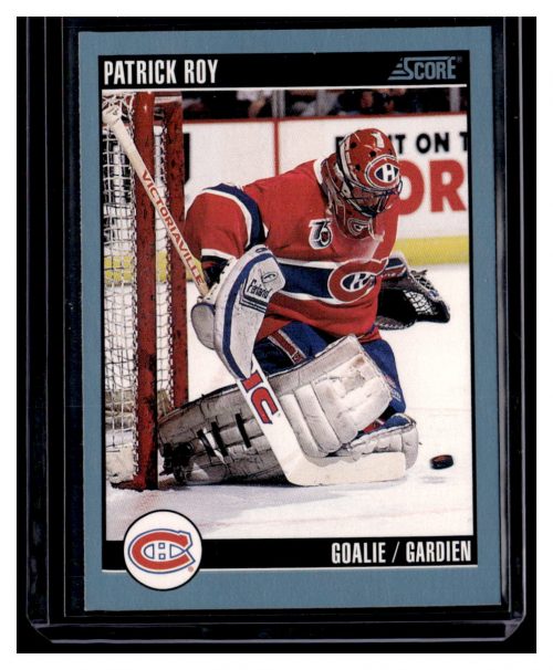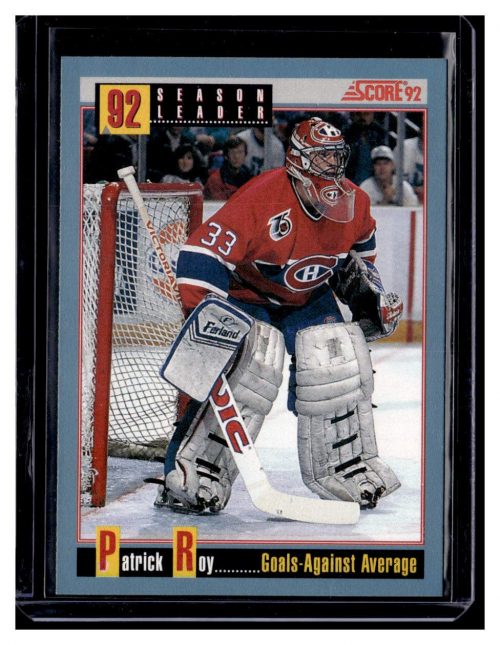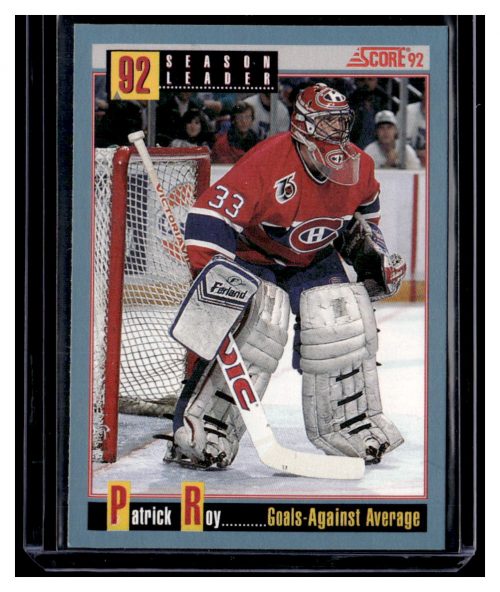 Hockey (Brand: Score) (Type: Score 92) (Subtype: 92 Season Leader) (Hall of Famer: ) (Superstar: ) (Rookie: ) (Kind of Packaging: Toploader with Sleeve) (Year: 1992) (Unique Number: 418) (Numbered Card: ) (Player: Patrick Roy)