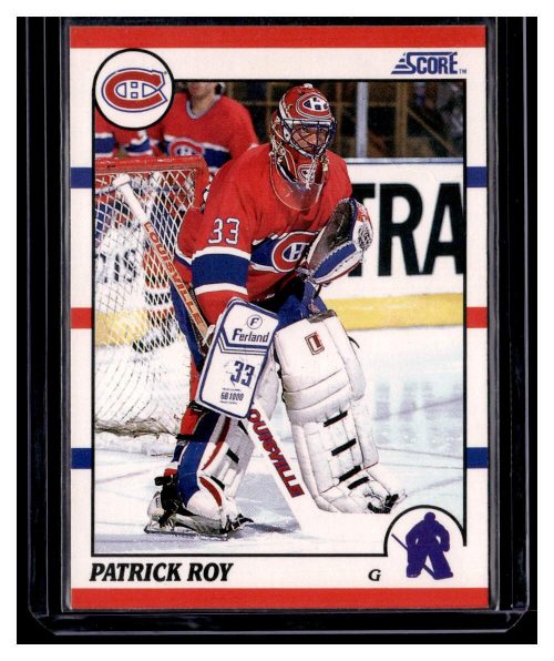 Hockey (Brand: Score) (Type: ) (Subtype: ) (Hall of Famer: ) (Superstar: ) (Rookie: ) (Kind of Packaging: Toploader with Sleeve) (Year: 1990) (Unique Number: 10) (Numbered Card: ) (Player: Patrick Roy)