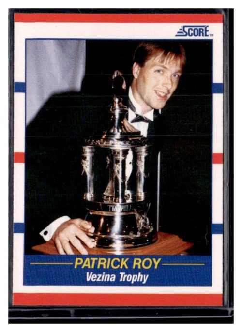 Hockey (Brand: Score) (Type: 1990 Vezna Trophy) (Subtype: ) (Hall of Famer: ) (Superstar: ) (Rookie: ) (Kind of Packaging: Toploader with Sleeve) (Year: 1990) (Unique Number: 364) (Numbered Card: ) (Player: Patrick Roy)