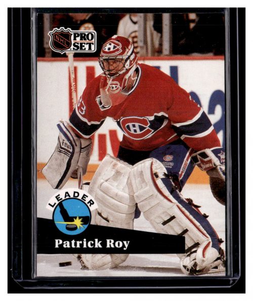 Hockey (Brand: Pro Set) (Type: NHL Pro Set) (Subtype: Leader) (Hall of Famer: ) (Superstar: ) (Rookie: ) (Kind of Packaging: Toploader with Sleeve) (Year: 1991) (Unique Number: 599) (Numbered Card: ) (Player: Patrick Roy)