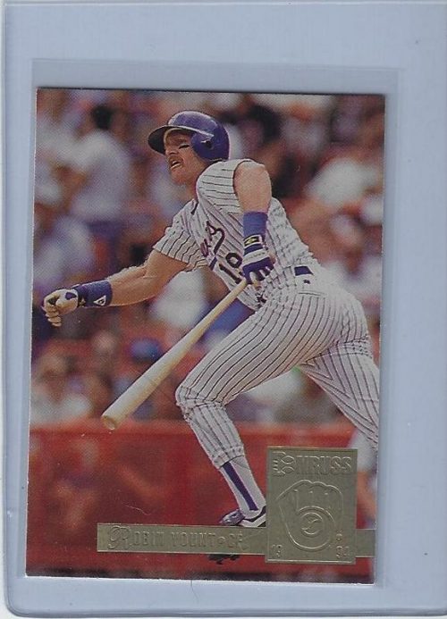 Baseball (Brand: Fleer) (Type: Fleer ’93) (Subtype: Sky’s the Limit) (Hall of Famer: ) (Superstar: ) (Rookie: ) (Kind of Packaging: Semi-Rigid with Sleeve) (Year: 1992) (Unique Number: 708) (Numbered Card: ) (Player:Robin Yount)