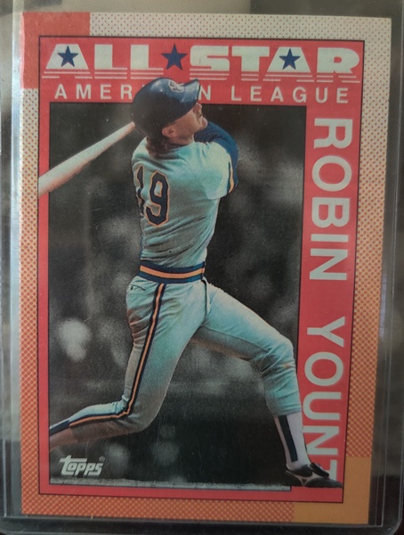 Baseball Card (Player: Robin Yount) (Superstar: No) (Hall of Fame: Yes) (Rookie: No) (Kind of Packaging: Top-Loader) (Sleeve: Yes) (Unique Number: N/A) (Year: 1986)