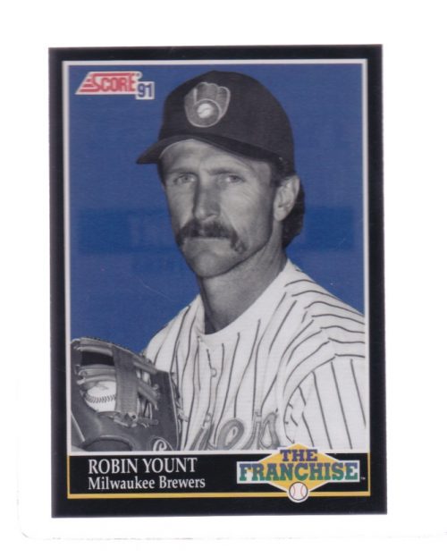 Baseball (Brand: Score) (Type: Score 91) (Subtype: The Franchise) (Hall of Famer: Y) (Superstar: N) (Rookie: N) (Kind of Packaging: Semi-Rigid with Sleeve) (Year: 1991) (Unique Number: 854) (Numbered Card: ) (Player:Robin Yount)