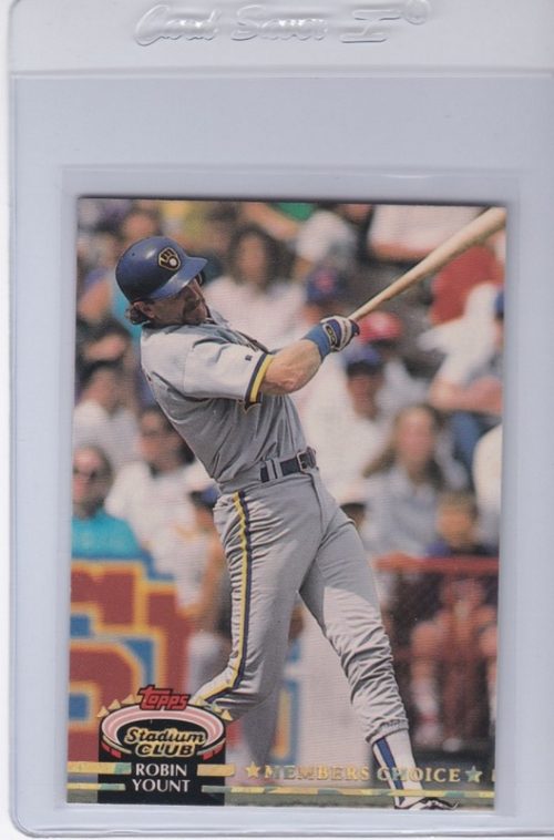 Baseball (Brand: Topps) (Type: Stadium Club) (Subtype: Members Choice) (Hall of Famer: Y) (Superstar: N) (Rookie: N) (Kind of Packaging: Semi-Rigid with Sleeve) (Year: 1992) (Unique Number: 607) (Numbered Card: ) (Player:Robin Yount)