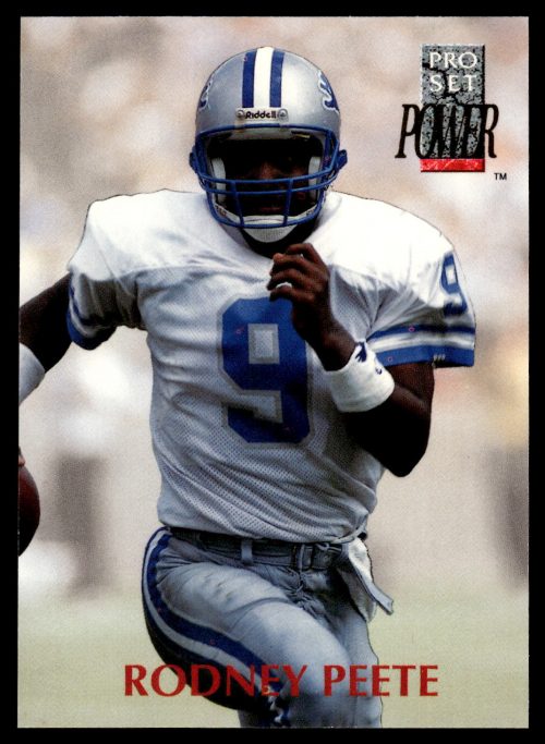 Football (Brand: Pro Set) (Type: Pro Set Power) (Subtype: ) (Hall of Famer: ) (Superstar: ) (Rookie: ) (Kind of Packaging: Semi-Rigid with Sleeve) (Year: 1992) (Unique Number: 9) (Numbered Card: ) (Player: Rodney Peete)