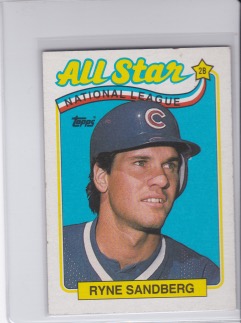 Baseball (Brand: Topps) (Type: All-Star) (Subtype: ) (Hall of Famer: Y) (Superstar: Y) (Rookie: N) (Kind of Packaging: Semi-Rigid with Sleeve) (Year: 1989) (Unique Number: 387) (Numbered Card: ) (Player:Ryne Sandberg)