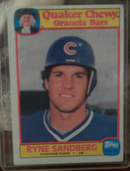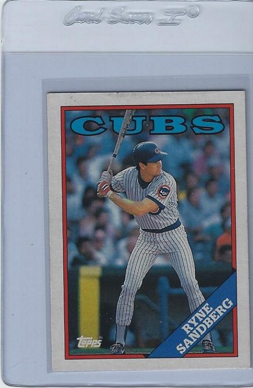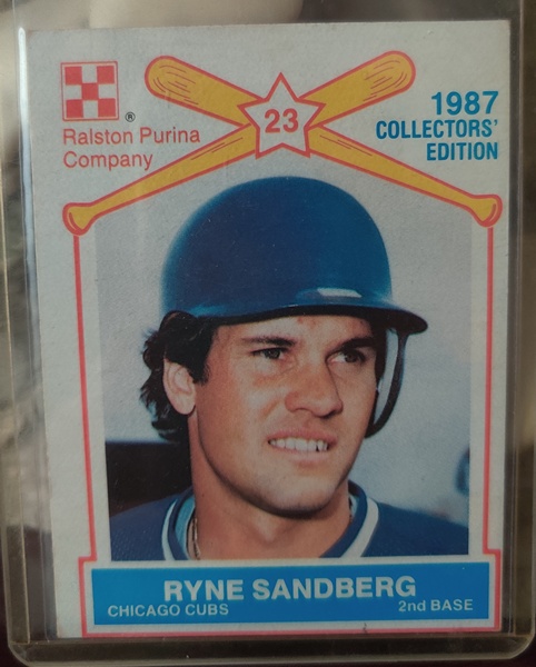 Baseball Card (Player: Ryne Sandberg) (Superstar: No) (Hall of Fame: Yes) (Rookie: No) (Kind of Packaging: Top-Loader) (Sleeve: Yes) (Unique Number: N/A) (Year: 1987)