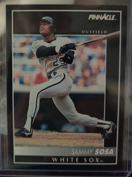 Baseball Card (Player: Sammy Sosa) (Superstar: Yes) (Hall of Fame: No) (Rookie: No) (Kind of Packaging: Top-Loader) (Sleeve: Yes) (Unique Number: 165) (Year: 1992)