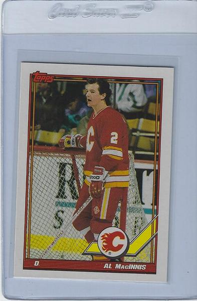 Hockey Card (Player: Al MacInnis) (Brand: Topps) (Type: ) (Hall of Fame: Yes) (Superstar: No) (Rookie: No) (Kind of Packaging: Semi-Rigid) (Sleeve: Yes) (Unique Number: 491) (Year: 1991)