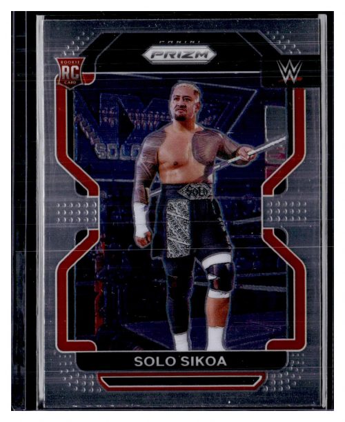 Wrestling (Brand: Panini) (Type: 2022 Prizm WWE) (Subtype: RC Rookie Card) (Hall of Famer: ) (Superstar: ) (Rookie: Y) (Kind of Packaging: Toploader with Sleeve) (Year: 2022) (Unique Number: 114) (Numbered Card: ) (Feature: Solo Sikoa)