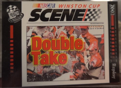 NASCAR (Brand: PrePress Pass) (Type: Press Pass 2003, 2002 Replay) (Subtype: NASCAR Winston Cup Scene, Double Take, 1993-2003 10th Anniversary) (Kind of Packaging: Toploader) (Year: 2002) (Unique Number: ) (Numbered Card: ) (Feature: Tony Stewart)