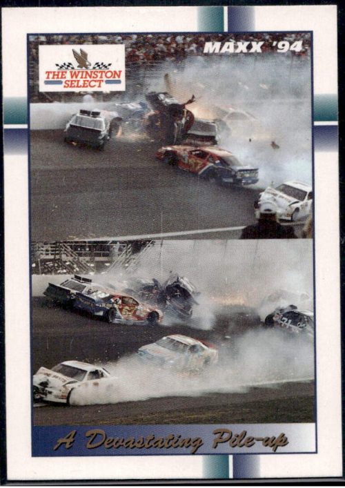 NASCAR (Brand: J.R. Maxx) (Type: The Winston Select) (Subtype: A Devastating Pile-Up) (Kind of Packaging: Semi-Rigid with Sleeve) (Year: 1994) (Unique Number: 325) (Numbered Card: ) (Driver: Ward Burton, Dave Marcis, Chuck Bown, Michael Waltrip…))