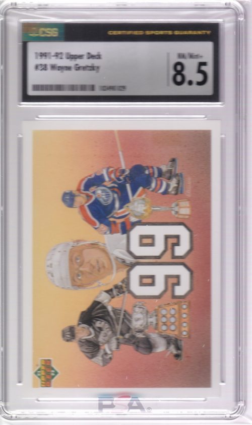 Hockey (Brand: Upper Deck) (Type: 1991-92) (Subtype: GRETZKY 99) (Kind of Packaging: Graded Slabbed) (Year: 1991) (Unique Number: 38) (Grade: NM/Mint+ 8.5) (Feature: Wayne Gretzky)