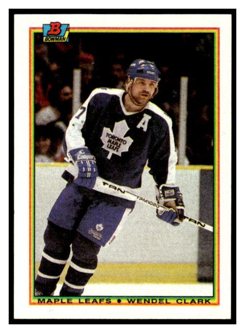 Hockey (Brand: Topps) (Type: Bowman) (Subtype: ) (Hall of Famer: ) (Superstar: ) (Rookie: ) (Kind of Packaging: Semi-Rigid with Sleeve) (Year: 1990) (Unique Number: 159) (Numbered Card: ) (Player: Wendel Clark)