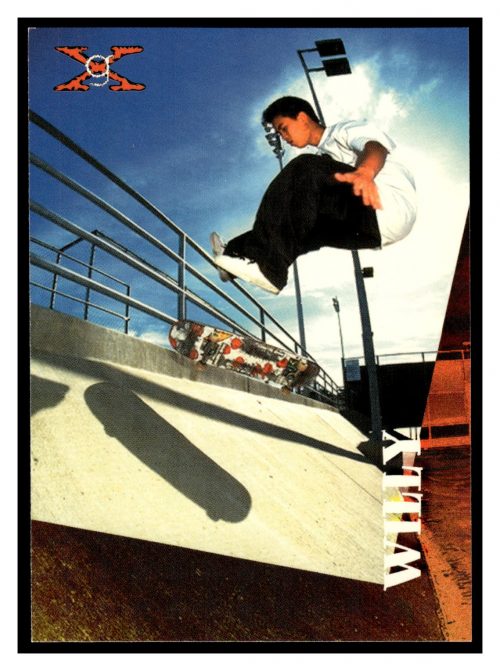 Entertainment (Brand: Vision) (Type: gX generation Extreme) (Subtype: skateboarding) (Hall of Famer: ) (Superstar: ) (Rookie: ) (Kind of Packaging: Toploader with Sleeve) (Year: 1994) (Unique Number: 138) (Numbered Card: ) (Feature: Willy Santos)