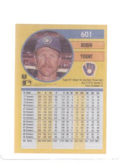 Baseball (Brand: Fleer) (Type: Fleer ’91) (Subtype: ) (Kind of Packaging: Semi-Rigid) (Year: 1991) (Unique Number: 601) (Player: Robin Yount)