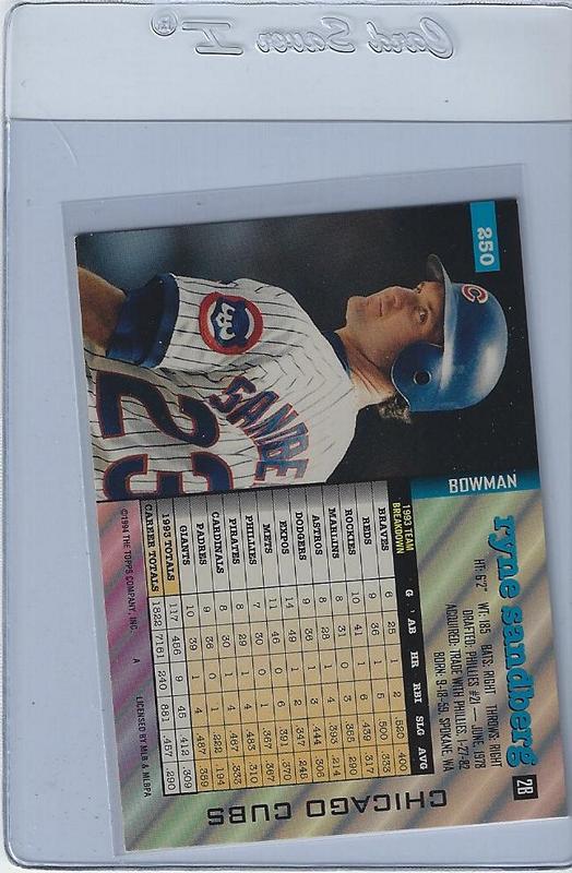 Baseball (Brand: Topps) (Type: Bowman) (Subtype: ) (Hall of Famer: Y) (Superstar: N) (Rookie: N) (Kind of Packaging: Semi-Rigid with Sleeve) (Year: 1994) (Unique Number: 250) (Numbered Card: ) (Player:Ryne Sandberg)