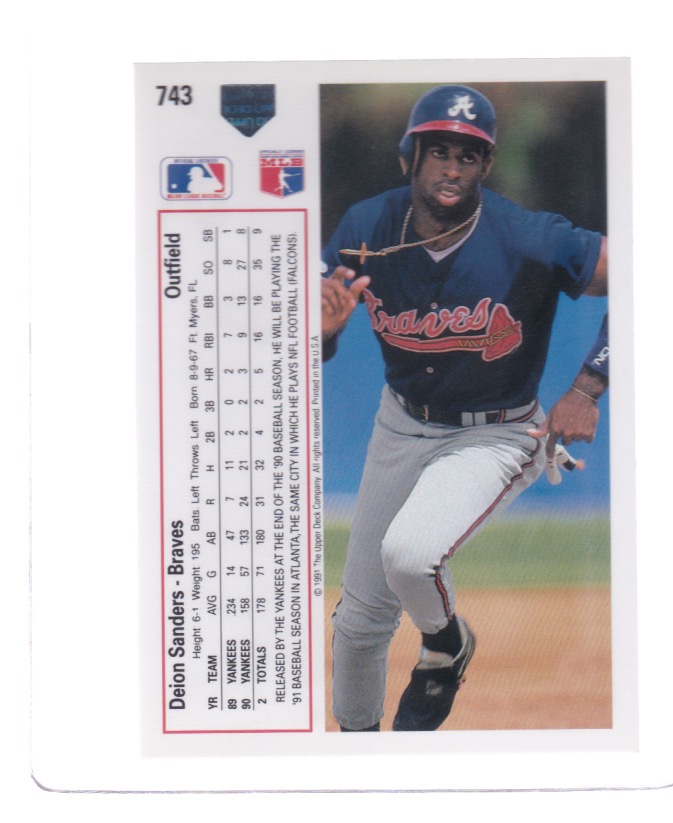 Baseball (Brand: Upper Deck) (Type: Upper Deck 1991) (Subtype: ) (Kind of Packaging: Semi-Rigid with Sleeve) (Year: 1990) (Unique Number: 743) (Player:Deion Sanders)