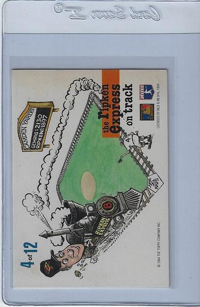 Baseball Cards (Player: Cal Ripken)(Brand: Topps) (Type: Stadium Club) (Subtype: N/A) (Kind of Packaging: Semi-Rigid) (Hall of Famer: Yes) (Superstar: No) (Rookie: No) (Unique Number: 4 of 12)(Year: 1994)