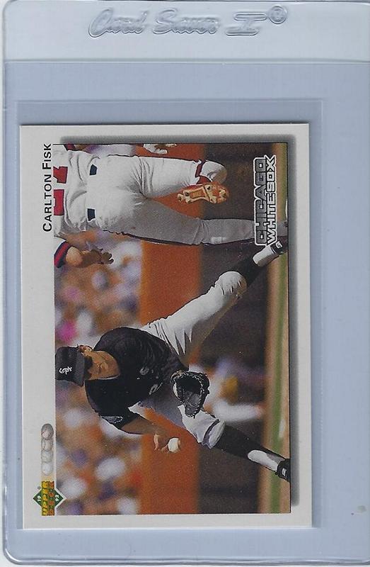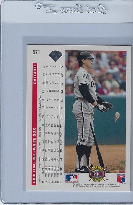 Baseball Cards (Player: Carlton Fisk) (Type: No/A) (Unique Number: 571) (Kind of Packaging: Semi-Rigid) (Sleeve: Yes) (Hall of Fame: Yes) (Superstar: Yes) (Rookie: No) (Year: 1991)