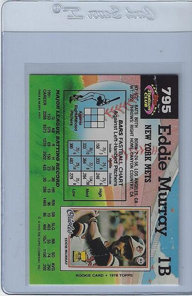 Baseball Cards (Player: Eddie Murray)(Brand: Topps) (Type: Stadium Club) (Subtype: N/A) (Kind of Packaging: Semi-Rigid) (Hall of Famer: Yes) (Superstar: No) (Rookie: No) (Unique Number: 795)(Year: 1992)