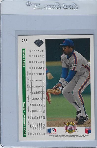 Baseball Cards (Player: Eddie Murray)(Brand: Upper Deck) (Type: N/A) (Subtype: N/A) (Kind of Packaging: Semi-Rigid) (Hall of Famer: Yes) (Superstar: No) (Rookie: No) (Unique Number: 753)(Year: 1992)