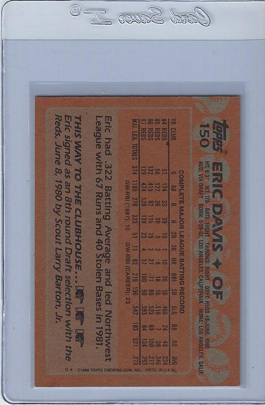 Baseball Cards (Player: Eric Davis) (Type: No/A) (Unique Number: 150) (Kind of Packaging: Semi-Rigid) (Sleeve: Yes) (Hall of Fame: Yes) (Superstar: Yes) (Rookie: No) (Year: 1988)