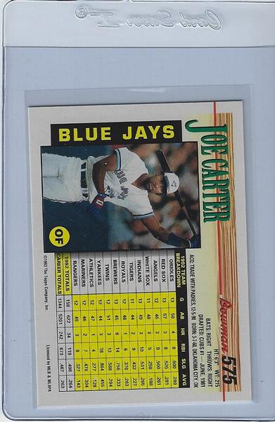Baseball Cards (Player: Joe Carter)(Brand: Topps) (Type: Bowman) (Subtype: N/A) (Kind of Packaging: Semi-Rigid) (Hall of Famer: Yes) (Superstar: No) (Rookie: No) (Unique Number: 575)(Year: 1993)