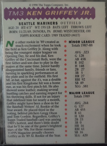 Baseball Cards (Player: Ken Griffey Jr.) (Type: Topps Magazine) (Feature: 1989 AL Rookie of the Year) (Unique Number: N/A) (Numbered Card: N/A) (Brand: Topps) (Year: 1990)