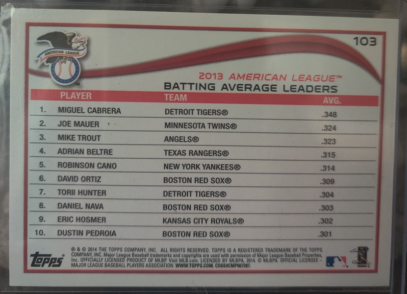 Player: Miguel Cabrera, Joe Mauer, Mike Trout