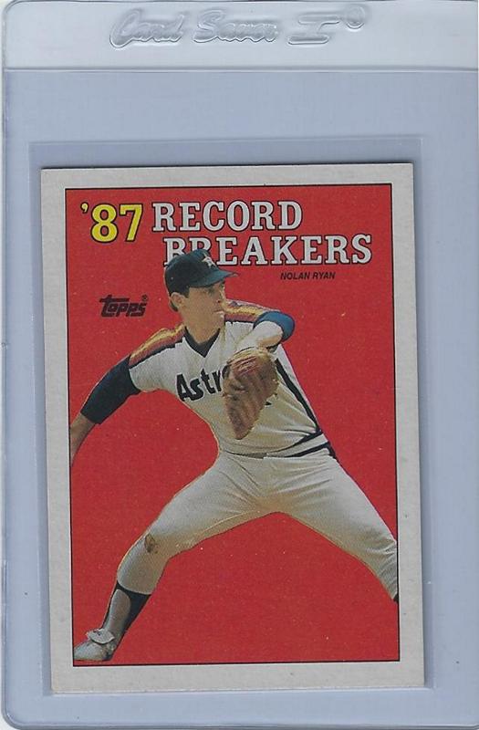 Baseball Cards (Player: Noolan Ryan) (Type: Record Breakers) (Unique Number: 6) (Kind of Packaging: Semi-Rigid) (Sleeve: Yes) (Hall of Fame: Yes) (Superstar: Yes) (Rookie: No) (Year: 1988)