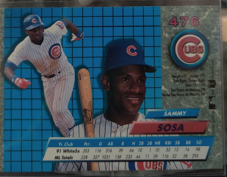 Baseball Cards (Player: Sammy Sosa) (Type: Ultra ’92) (Feature: N/A) (Unique Number: 476) (Numbered Card: N/A) (Brand: Fleer) (Year: 1992)